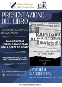 Venerdì 9 maggio, alle ore 18:00, presso il Circolo Magistrati della Corte dei Conti (Roma, Via del Foro Italico 430), le “Edizioni del Roveto” presentano, in anteprima, il libro “I coperchi del diavolo su Aldo Moro” di Raffaele Di Ruberto.